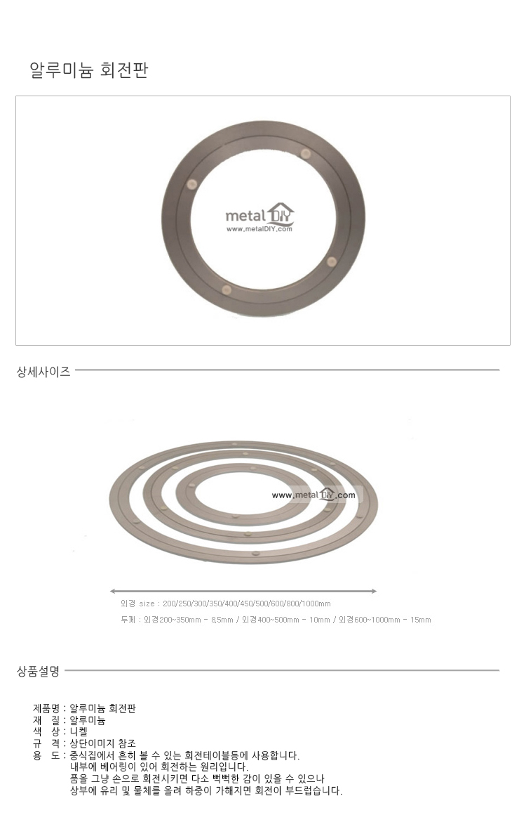 * 적정하중 : 200mm-25kg이하, 250mm-25kg이하