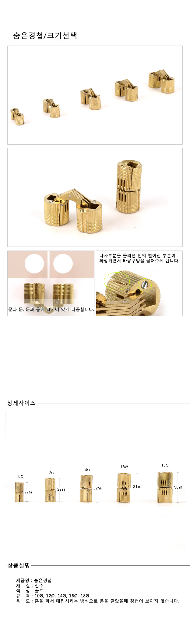 숨은경첩/14파이/골드