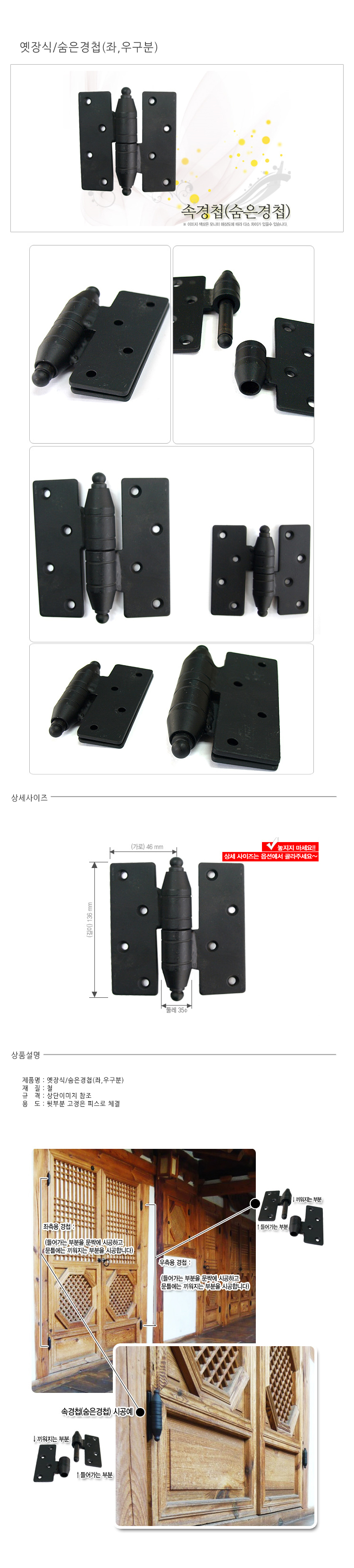 옛장식/숨은경첩/36*106mm*25ø/우/4-15
