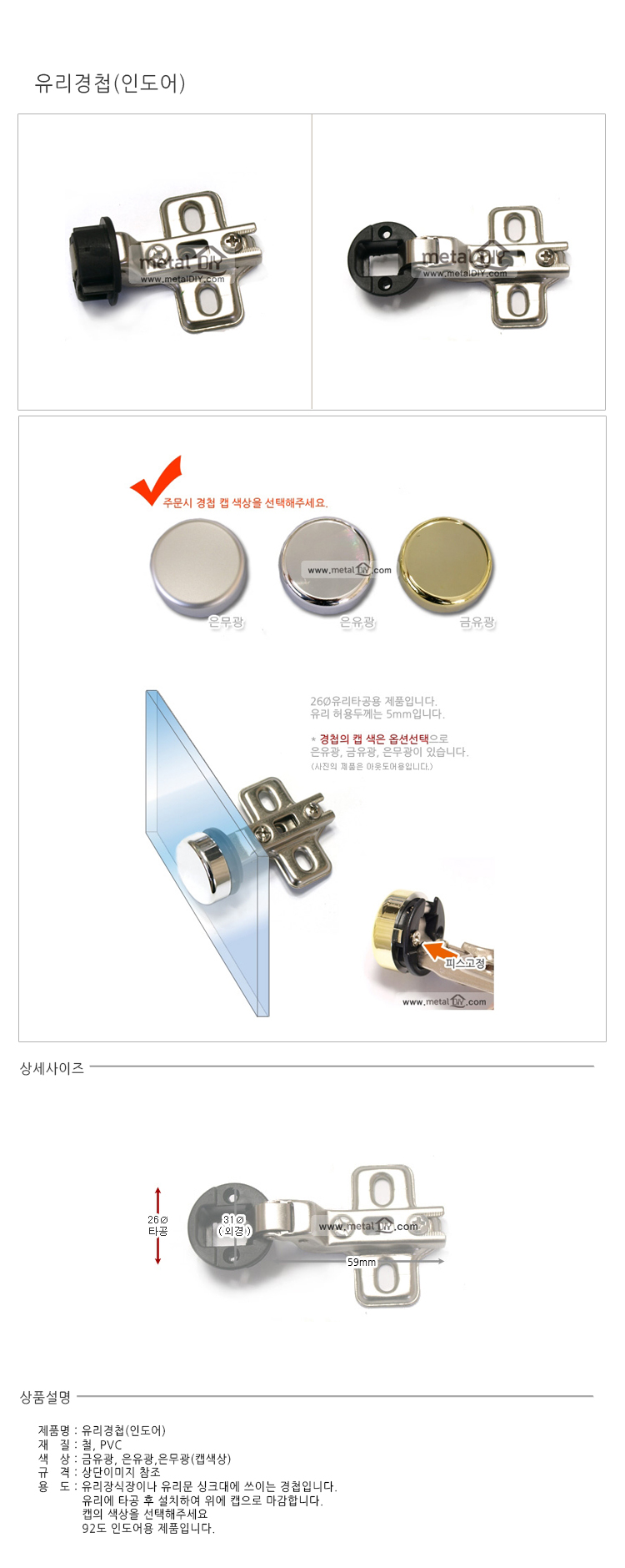 유리경첩/인도아/타공용/골드