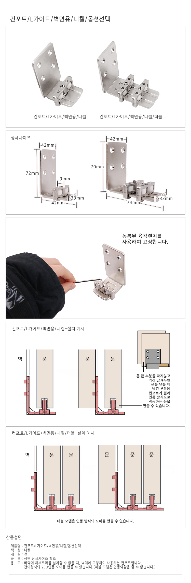 컨포트/L가이드/벽면용/니켈/더블