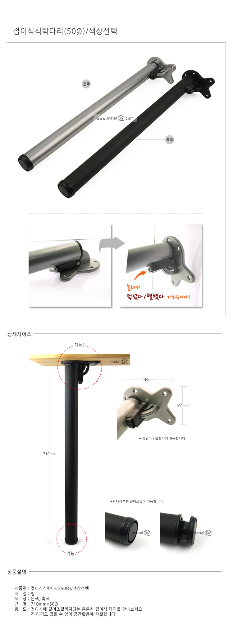 접이식식탁다리/철/흑색/50파이/CB