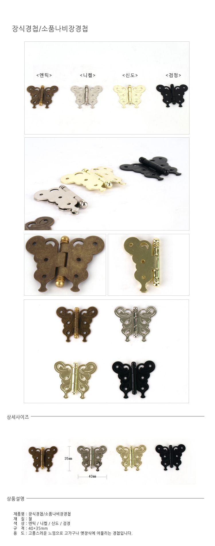 장식경첩/소품나비장경첩/40*35/엔틱
