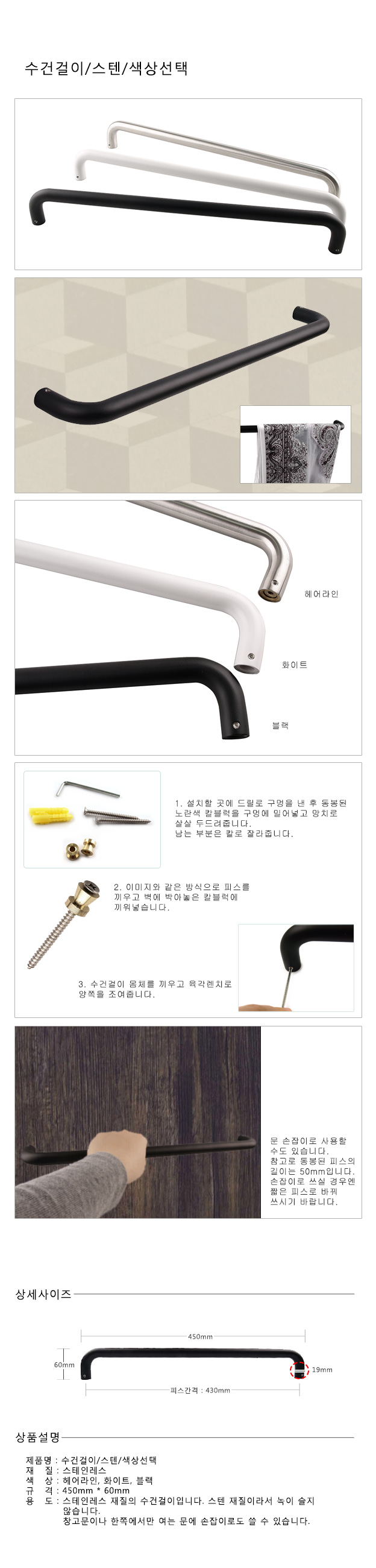 수건걸이/스텐/TB450SS/헤어라인