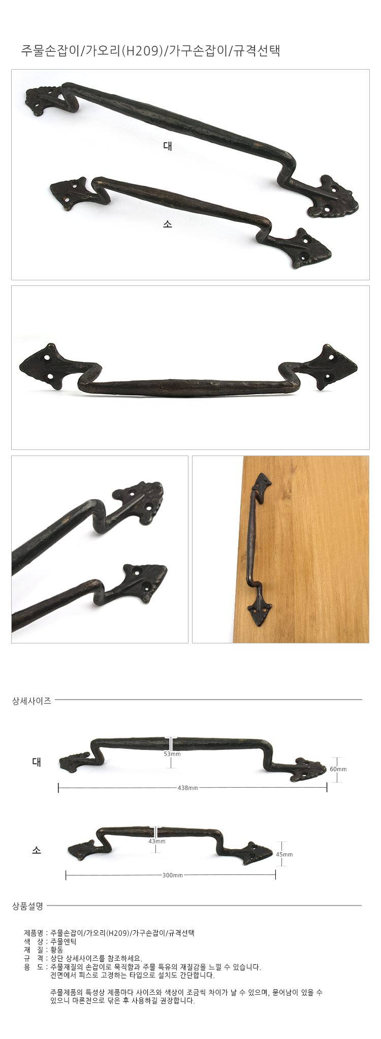 주물손잡이/가오리/소/H209