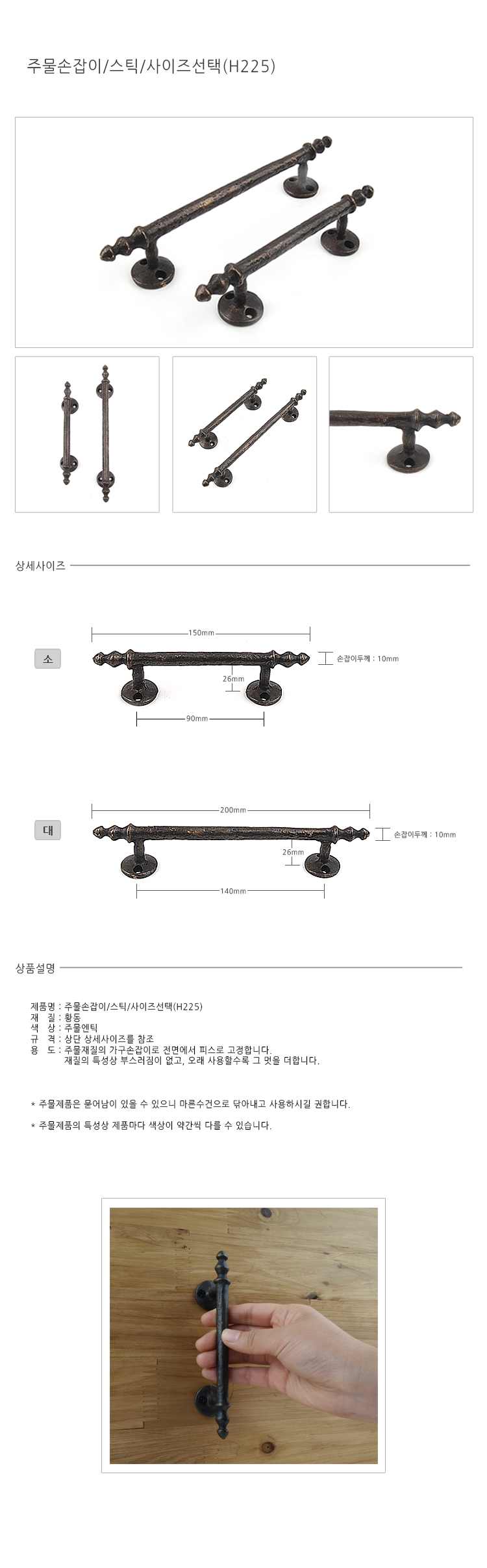 주물손잡이/스틱/대/H225