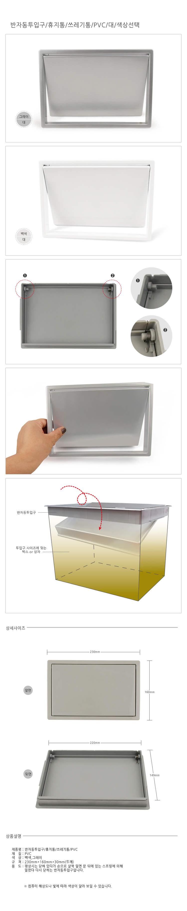 반자동투입구/PVC/그레이/대