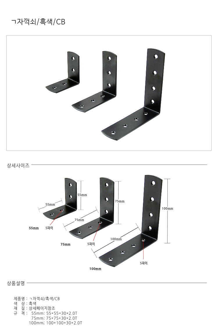 ㄱ자꺽쇠/100*100*30*2.0T/흑색/CB