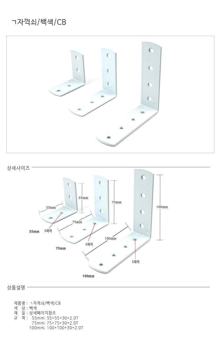 ㄱ자꺽쇠/75*75*30*2.0T/백색/CB