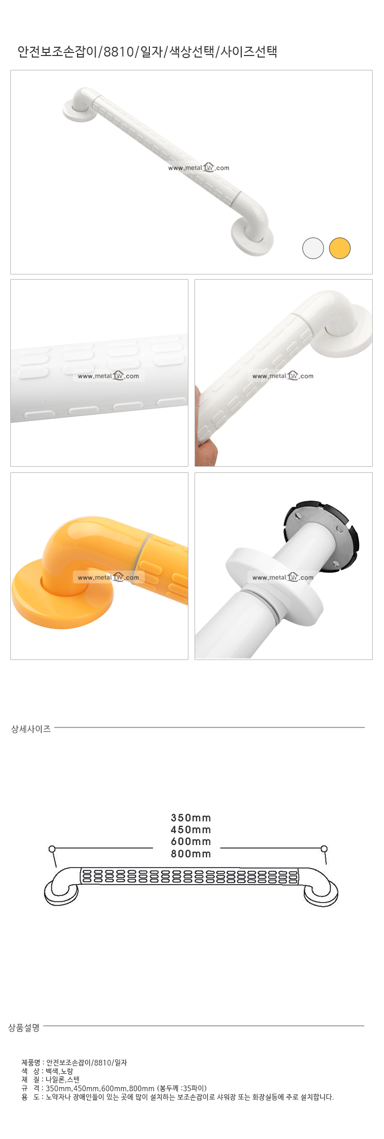 안전보조손잡이/일자/450mm/노랑/CB