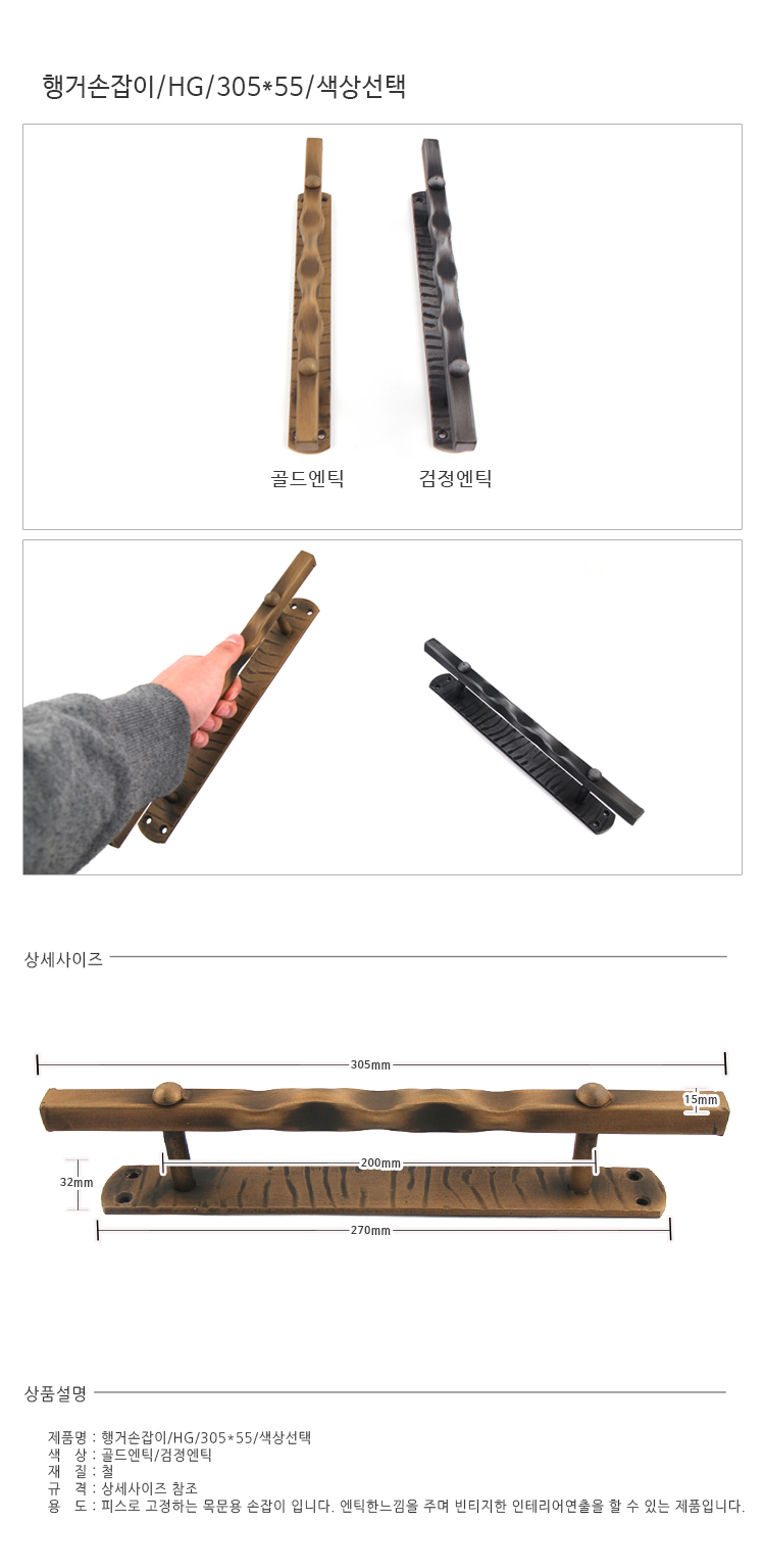 행거손잡이/검정엔틱/HG54-3/305*55