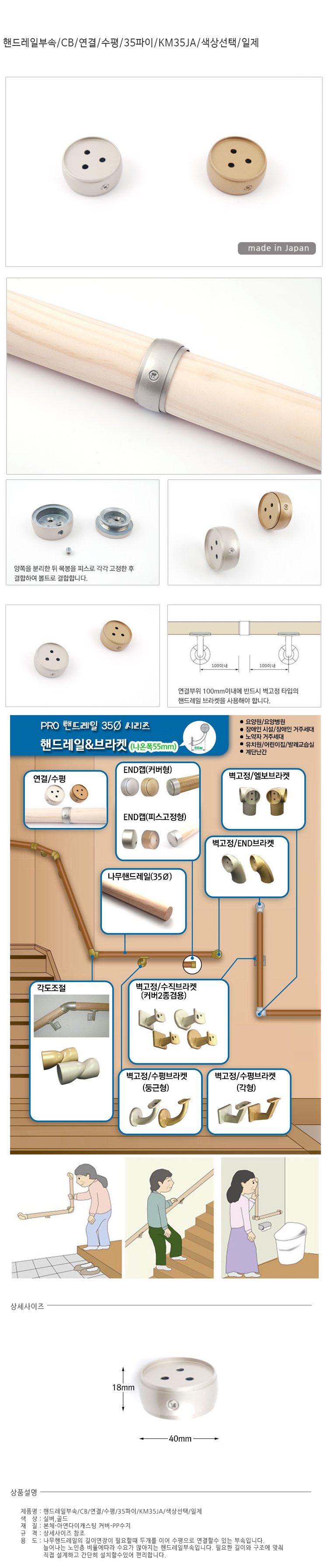 핸드레일부속/연결/수평/실버/KM35JA-S/일제/CB