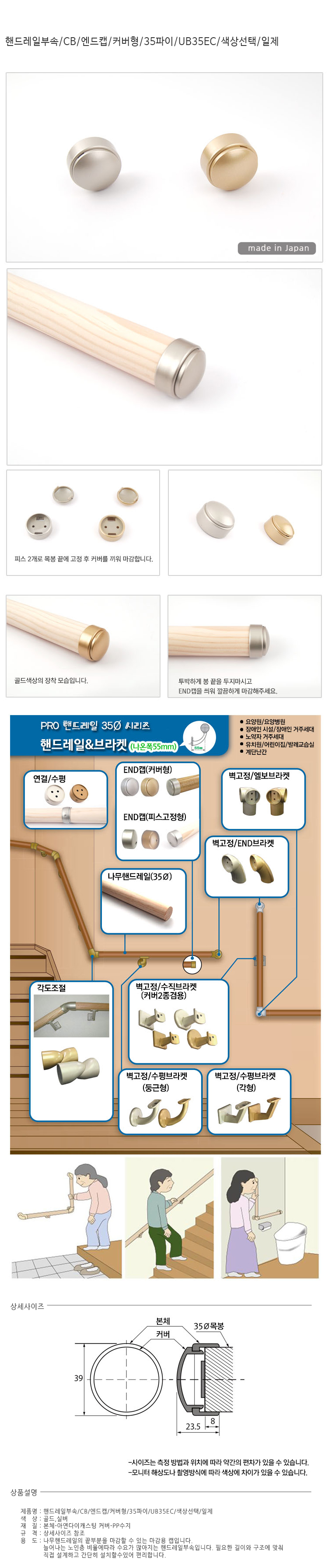 핸드레일부속/엔드캡/커버형/실버/UB35EC-S/일제/CB