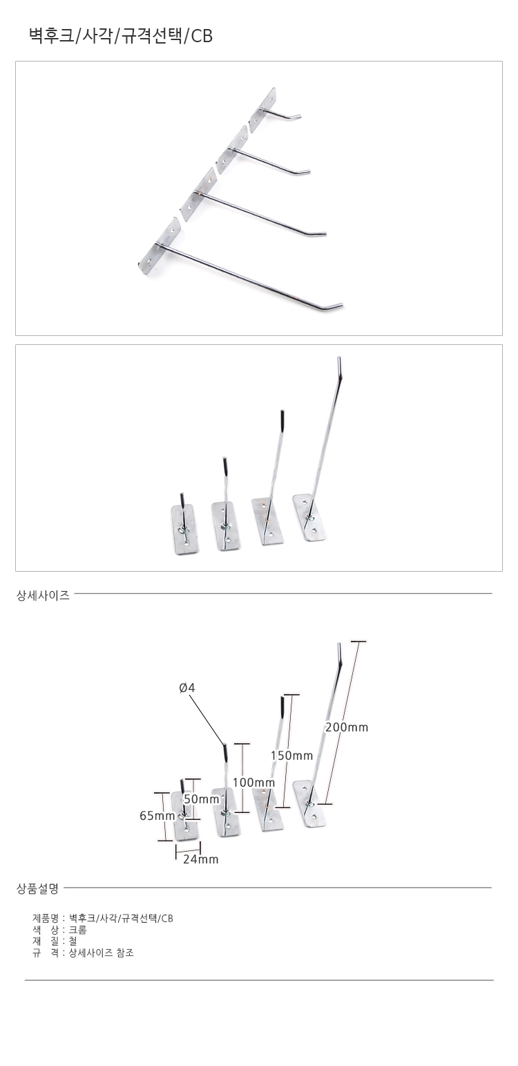 벽후크/사각/4*100mm/CB
