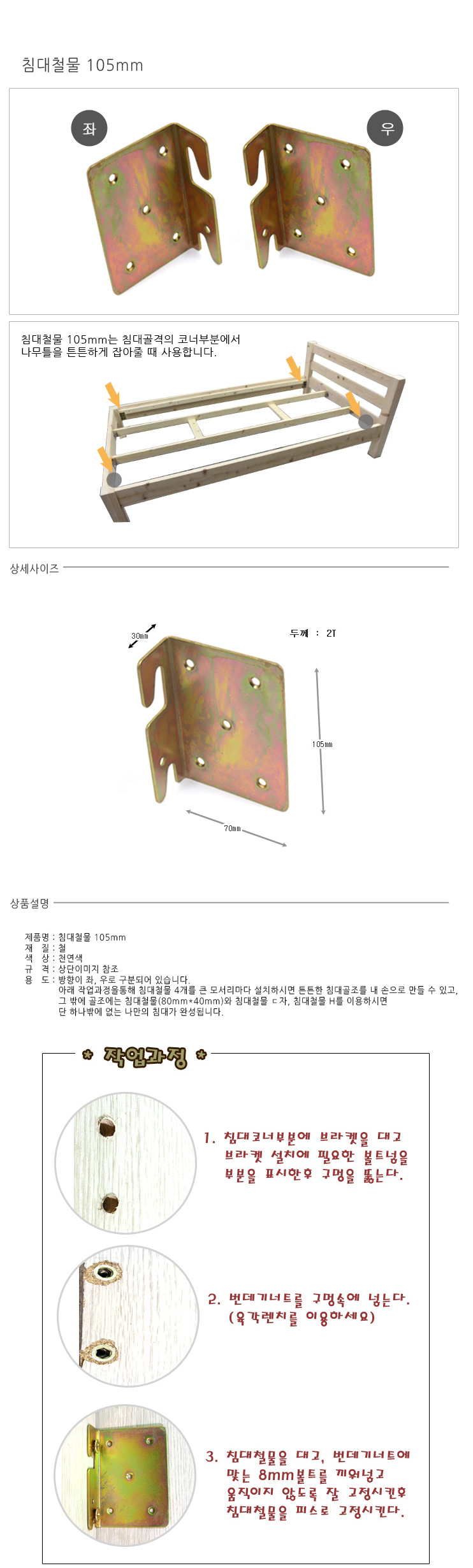 침대철물/105mm/우/천연색/개당