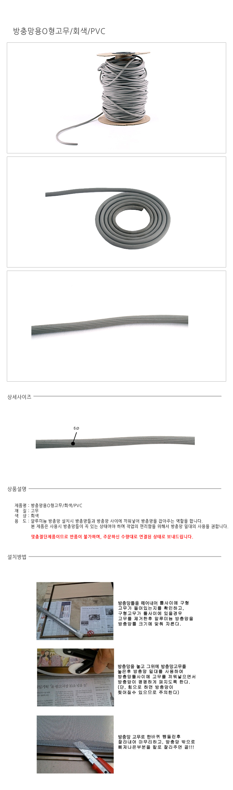 !)롤)방충망쫄대/pvc/회색/신형/180M