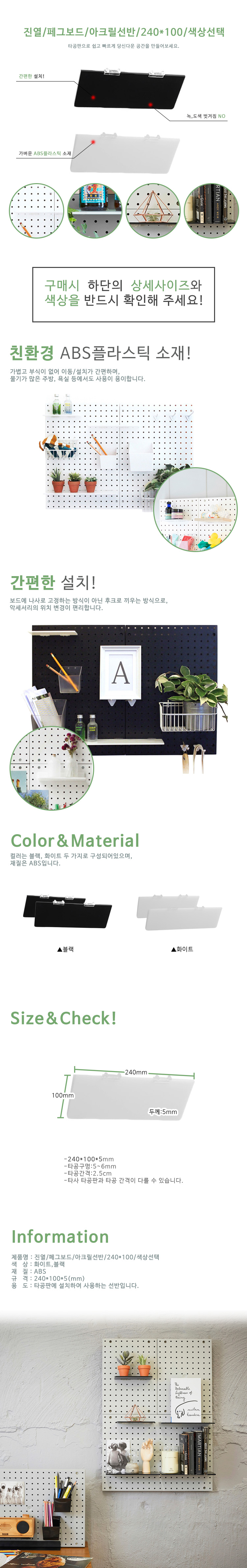 진열/페그보드/아크릴선반/240*100/블랙