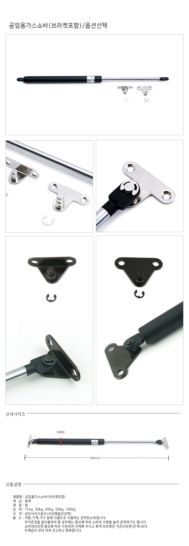 가스쇼바세트/22*500*15kg/공업용/흑색