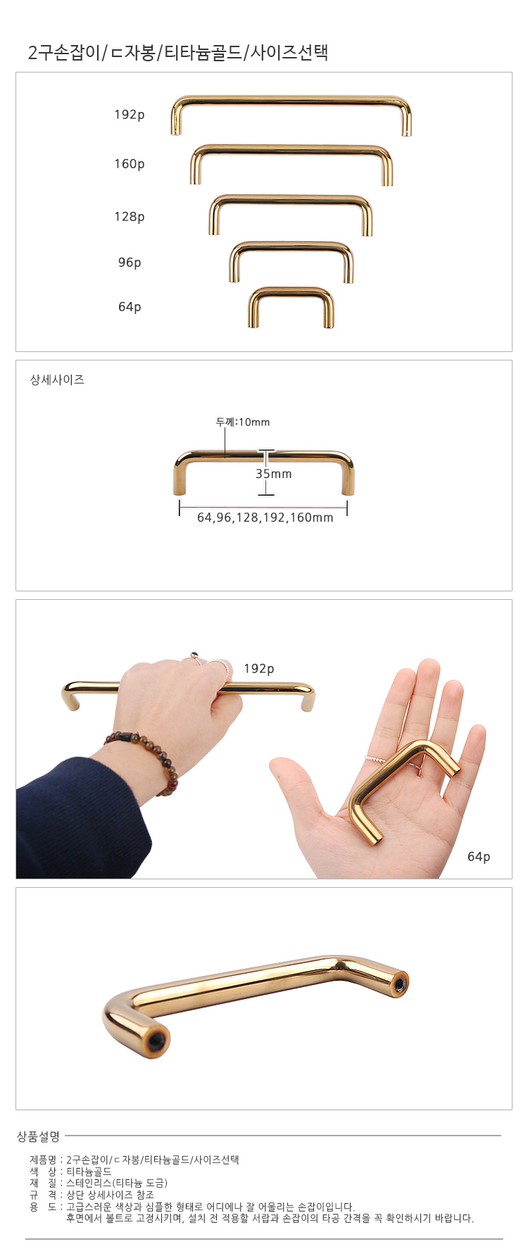 2구손잡이/ㄷ자봉/티타늄골드/10*128P