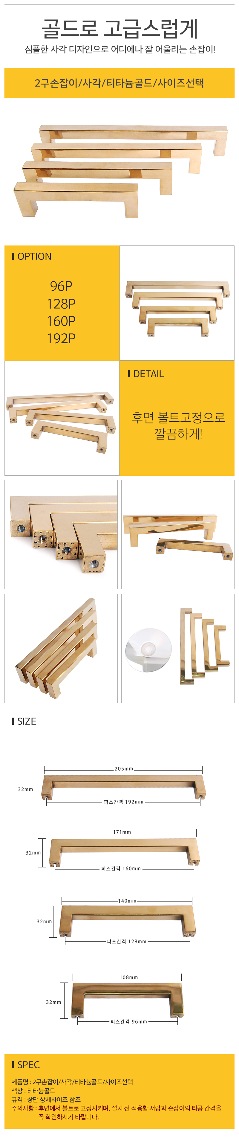 2구손잡이/사각/티타늄골드/128P