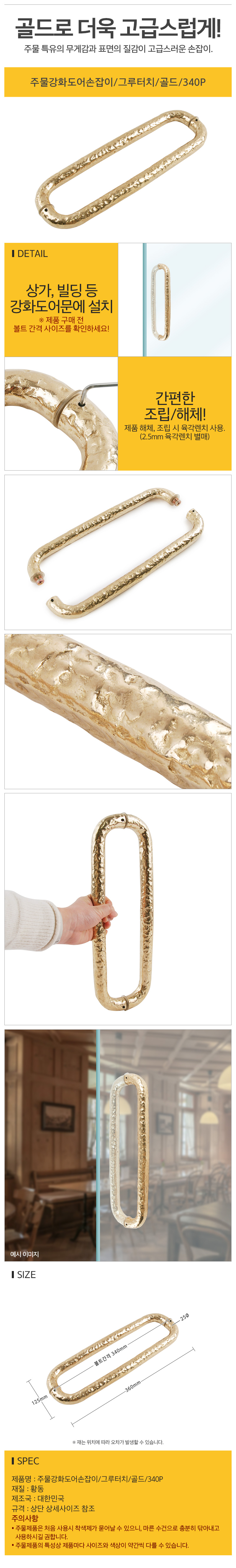 주물강화도어손잡이/그루터치/골드/340P
