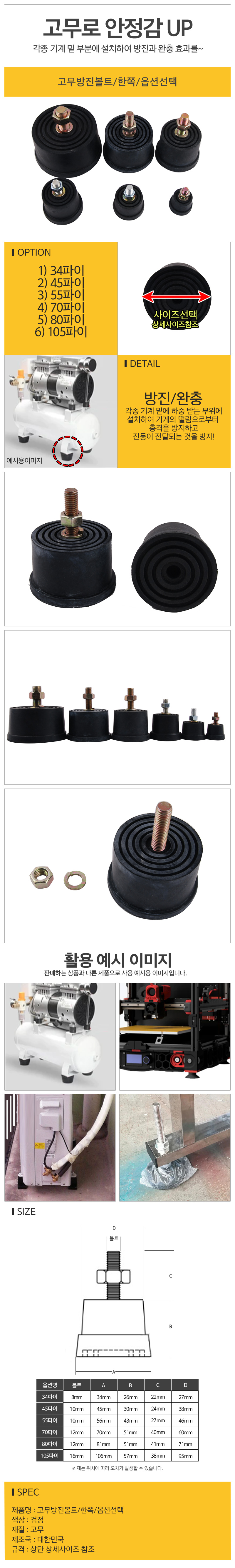 고무방진볼트/한쪽/105*M16*H57