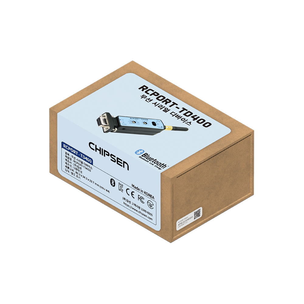 [칩센] 무선 시리얼통신 컨버터 RS232 블루투스 RCPORT-TD400