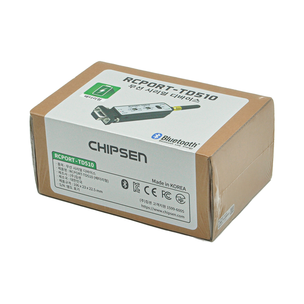 [칩센] 무선 시리얼통신 컨버터 RS232 블루투스 브로드캐스팅(비콘) RCPORT-TD510 배터리타입