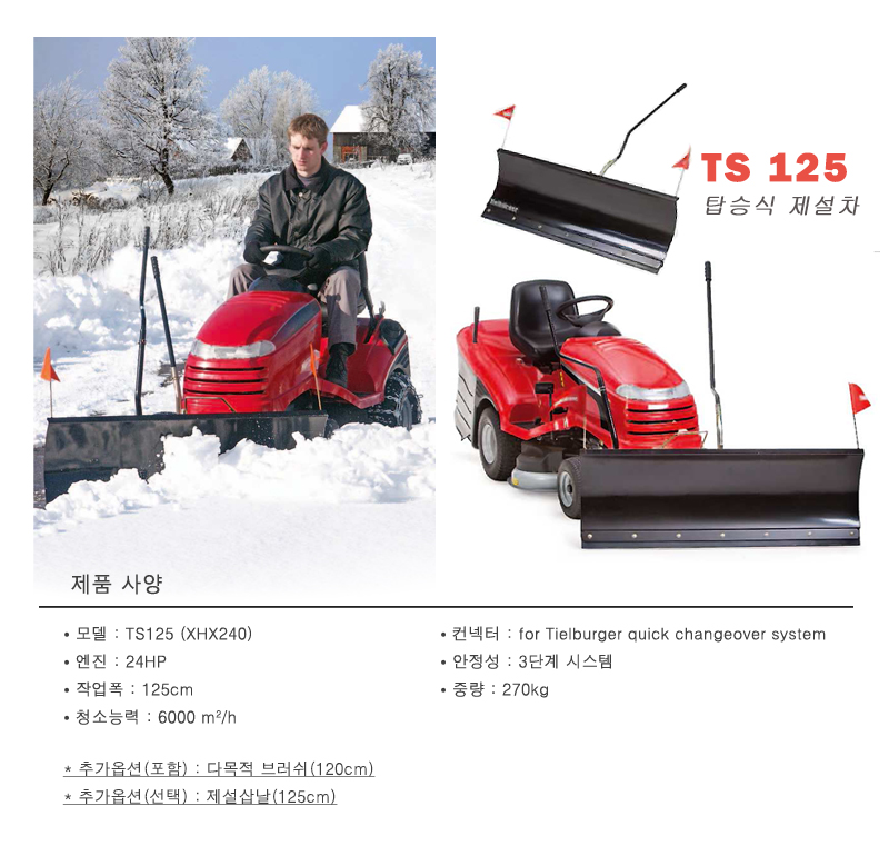승용 제초기 옵션 제설판 TS125(XHX240,4륜구동, 독일)
