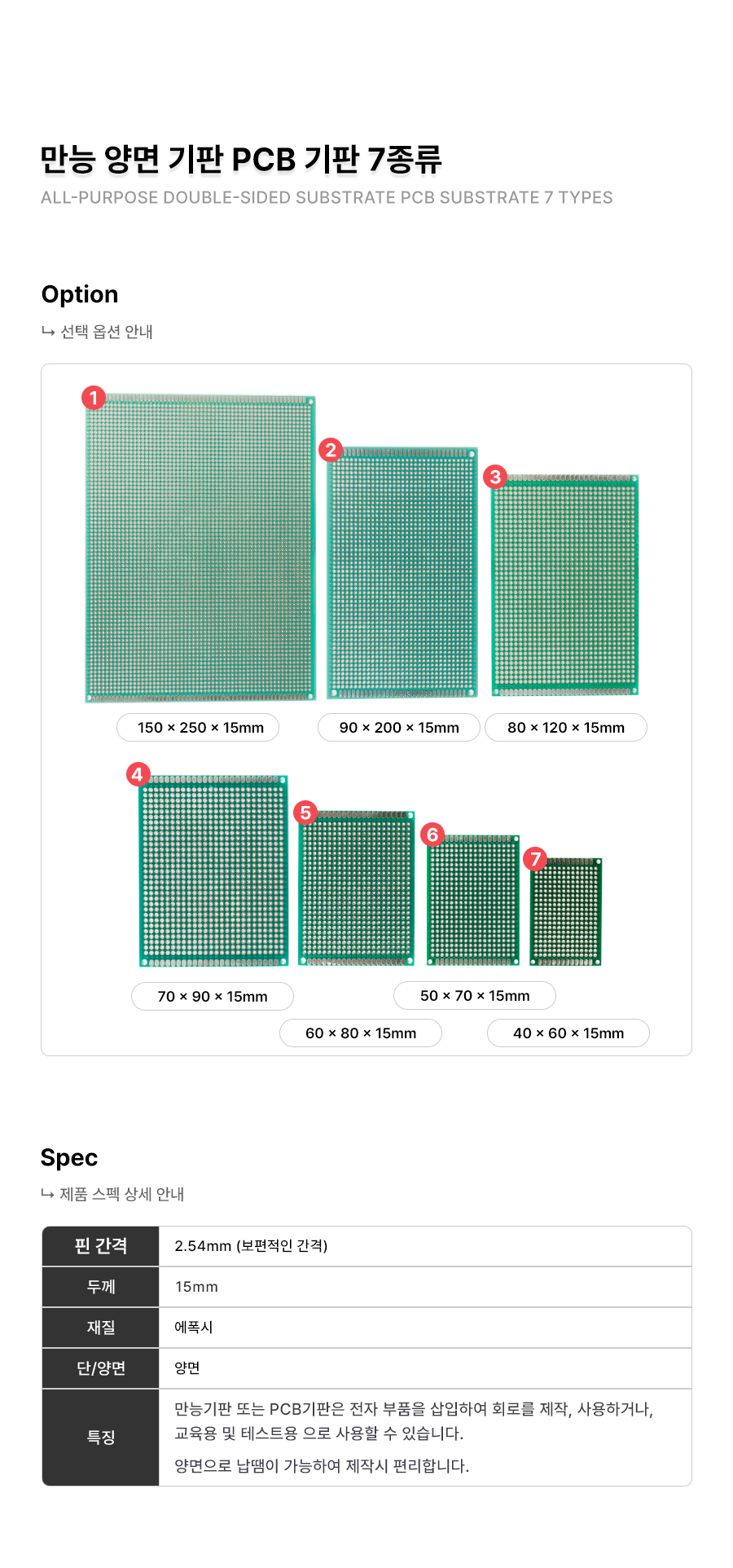 아두이노 만능기판(양면) PCB기판 사이즈 옵션 선택