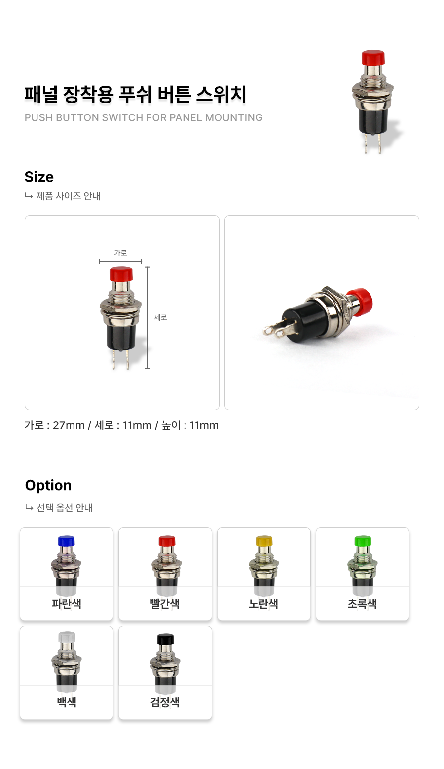 아두이노 패널 장착용 푸쉬 버튼 스위치(6색 선택)