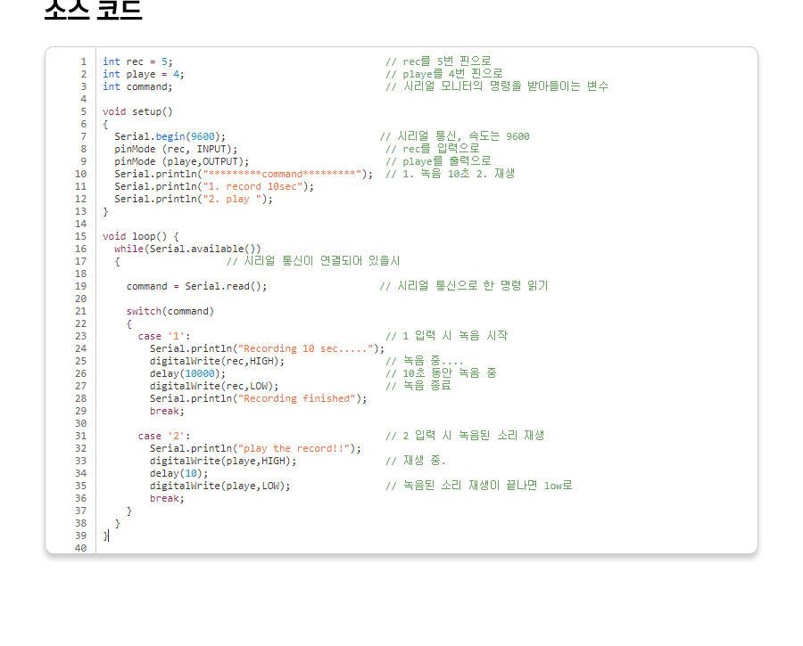 Serial.println("*********command*********"); // 1. 녹음 10초 2. 재생