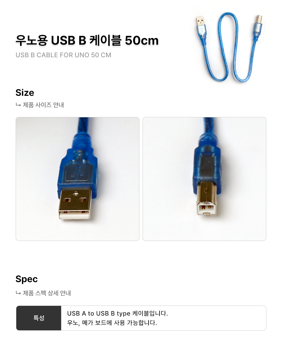 길이 50cm, 우노, 메가에 사용, USB A to B type