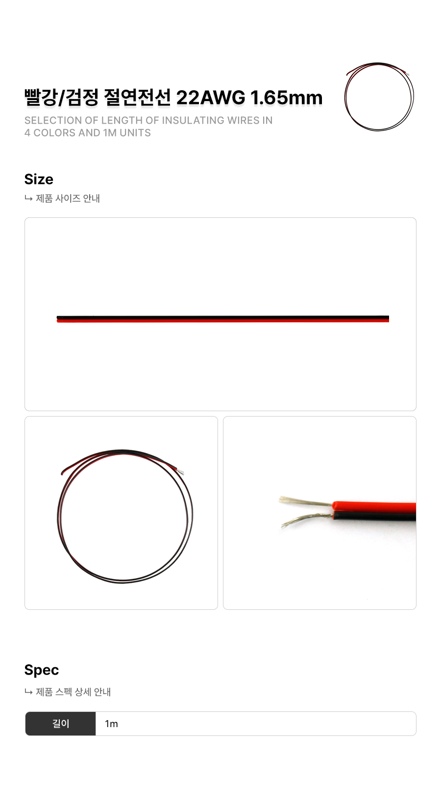 아두이노 빨/검 절연전선 22AWG 1.65mm (1m 단위 길이선택)