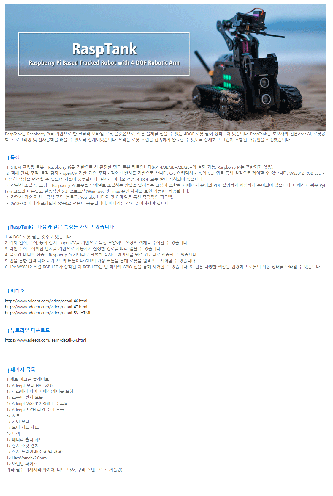 WiFi 무선 4축 로봇암 스마트카 키트 ADR013 RaspTank Adeept