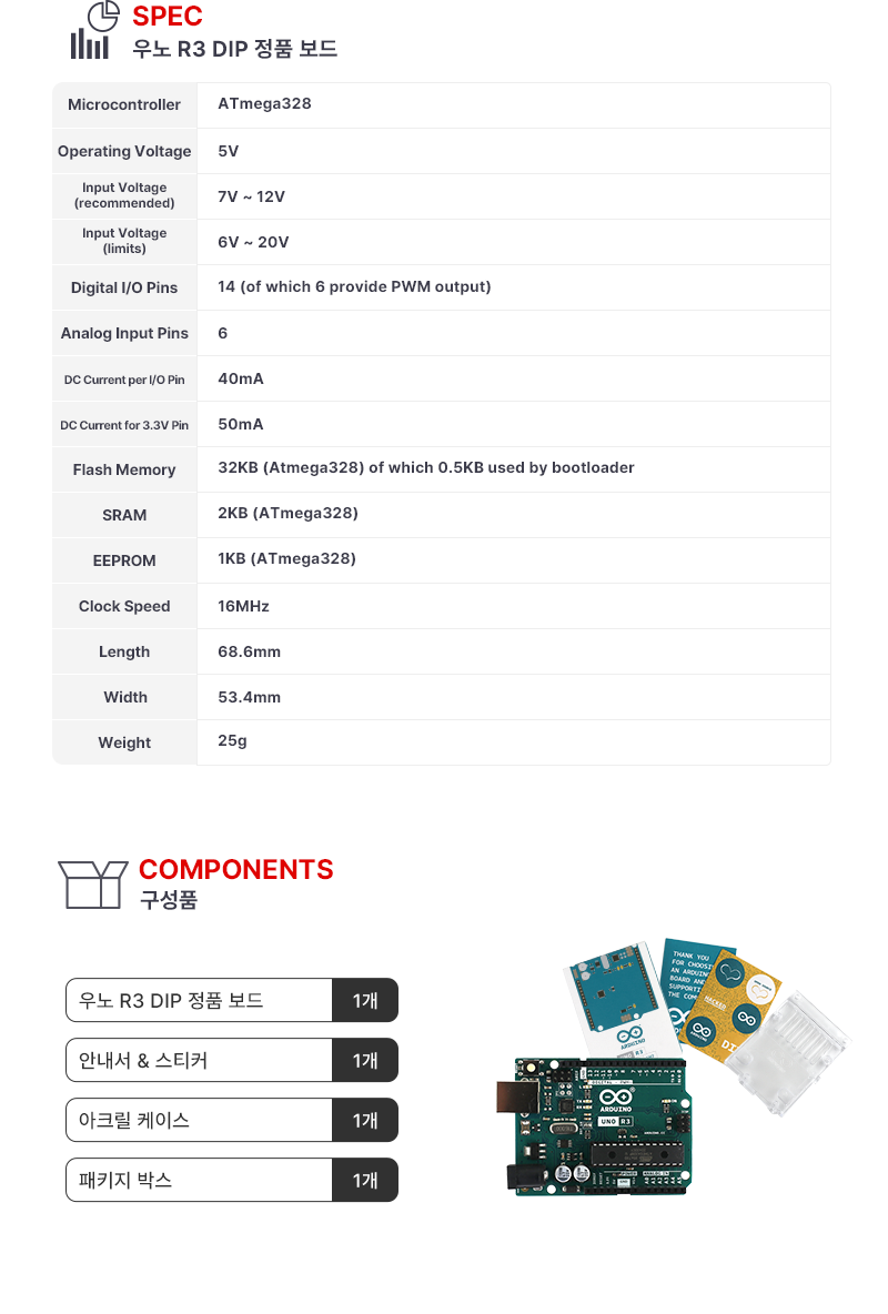 Arduino Uno (R3) DIP 정품 아두이노 우노 DIP 보드