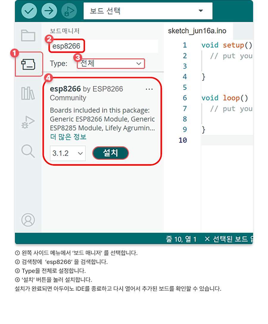 위 이미지에서 빨간색 표시가 되어있는 추가적인 보드 매니저 항목에 아래 url을 추가해줍니다.