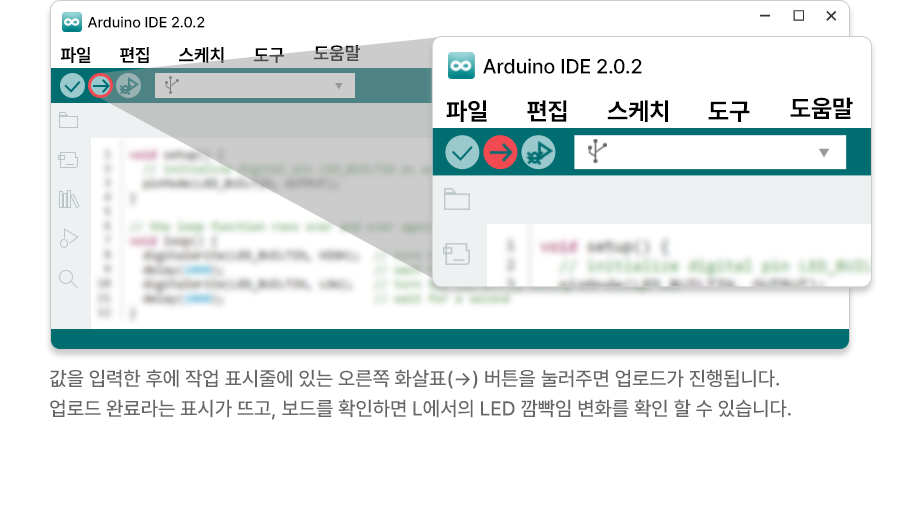 1 2 3 4 5 6 7 8 9 10 11 12 13 | void setup() { // initialize digital pin LED_BUILTIN as an output. pinMode(LED_BUILTIN, OUTPUT); } // the loop function runs over and over again forever void loop() { digitalWrite(LED_BUILTIN, HIGH); // turn the LED on (HIGH is the voltage level) delay(1000); // wait for a second digitalWrite(LED_BUILTIN, LOW); // turn the LED off by making the voltage LOW delay(1000); // wait for a second } | cs |