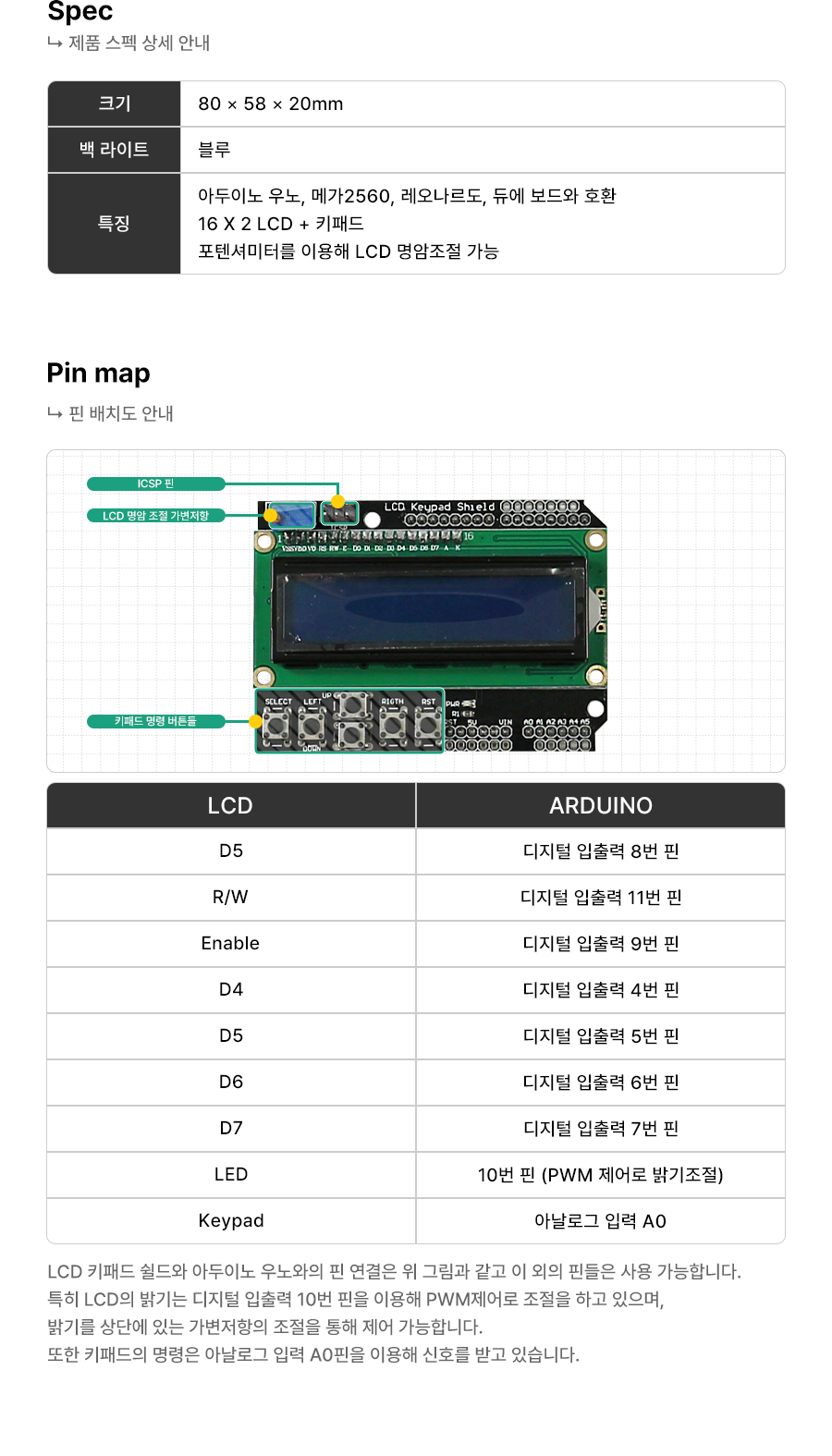 LiquidCrystal lcd(8, 9, 4, 5, 6, 7); // LCD패널에 사용되는 핀 설정