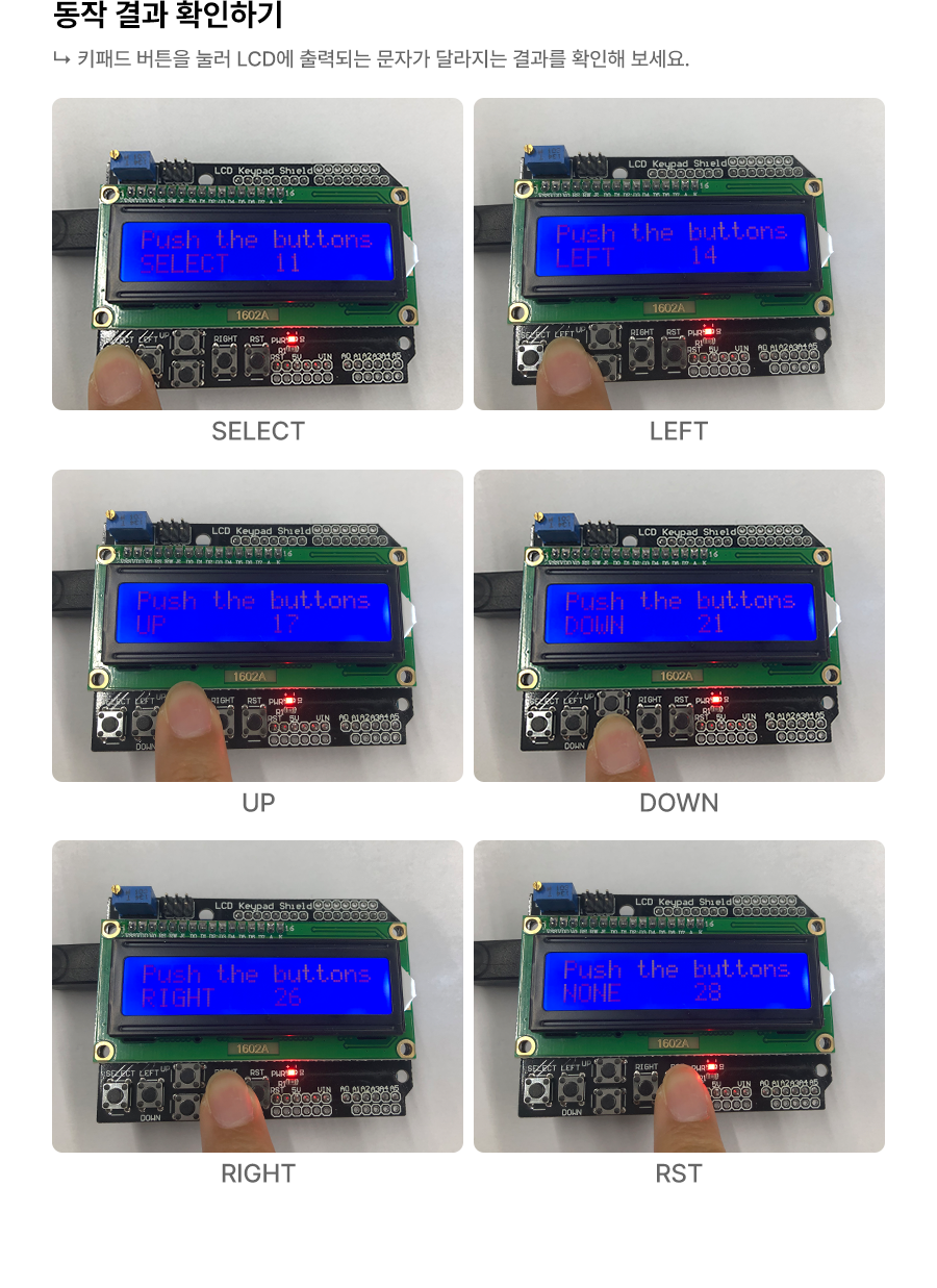 lcd.print("Push the buttons"); // 첫번째 줄에 출력