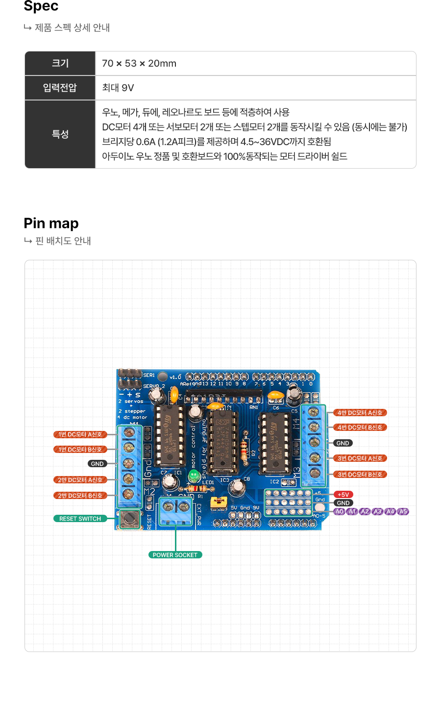 라인트레이서용 모터 드라이버 쉴드(납땜됨)