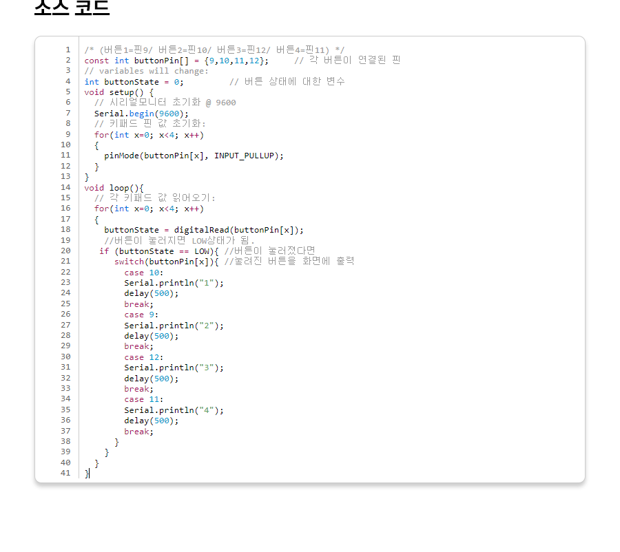 const int buttonPin[] = {9,10,11,12}; // 각 버튼이 연결된 핀