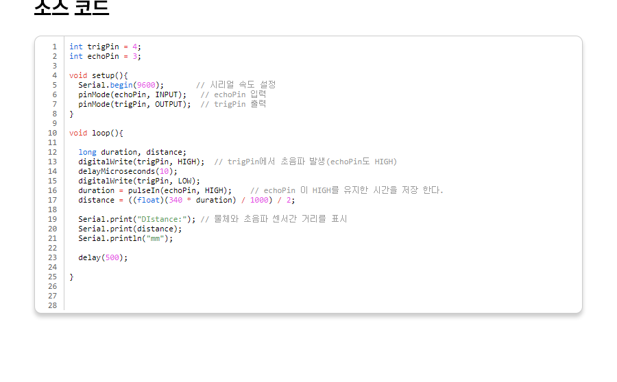 pinMode(trigPin, OUTPUT); // trigPin 출력