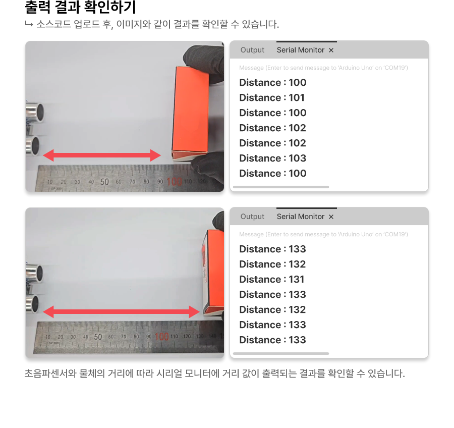 Serial.print("DIstance:"); // 물체와 초음파 센서간 거리를 표시