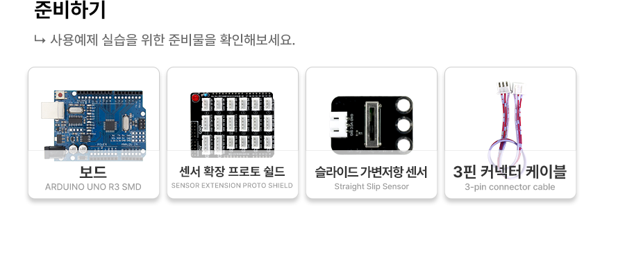 1 2 3 4 5 6 7 8 9 10 11 12 13 14 15 16 17 18 19 20 21 22 23 24 25 26 27 28 29 30 31 | // 슬라이드 센서가 연결된 아날로그 핀 int slideSensorPin = A0; // LED가 연결된 디지털 핀 int ledPin = 13; void setup() { // 시리얼 통신을 시작합니다. Serial.begin(9600); // LED 핀을 출력으로 설정합니다. pinMode(ledPin, OUTPUT); } void loop() { // 슬라이드 센서에서 값을 읽어옵니다. int sensorValue = analogRead(slideSensorPin); // 시리얼 모니터에 슬라이드 값을 출력합니다. Serial.print("슬라이드 값: "); Serial.println(sensorValue); // 슬라이드 값에 따라 LED를 제어합니다. // 슬라이드 값이 512보다 크면 LED를 켭니다. if (sensorValue > 512) { digitalWrite(ledPin, HIGH); // LED 켜기 } else { digitalWrite(ledPin, LOW); // LED 끄기 } // 짧은 딜레이를 추가하여 반복적으로 읽습니다. delay(100); } | cs |