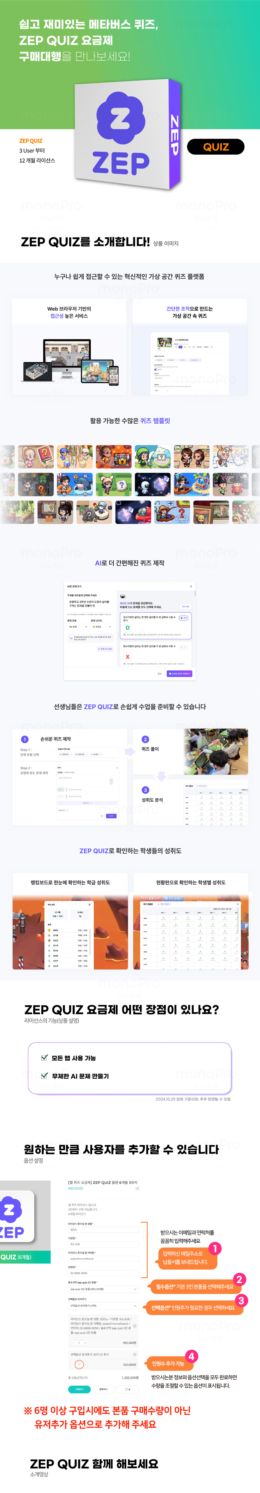 젭 퀴즈 요금제 : 플랜 12개월 3유저 ZEP QUIZ