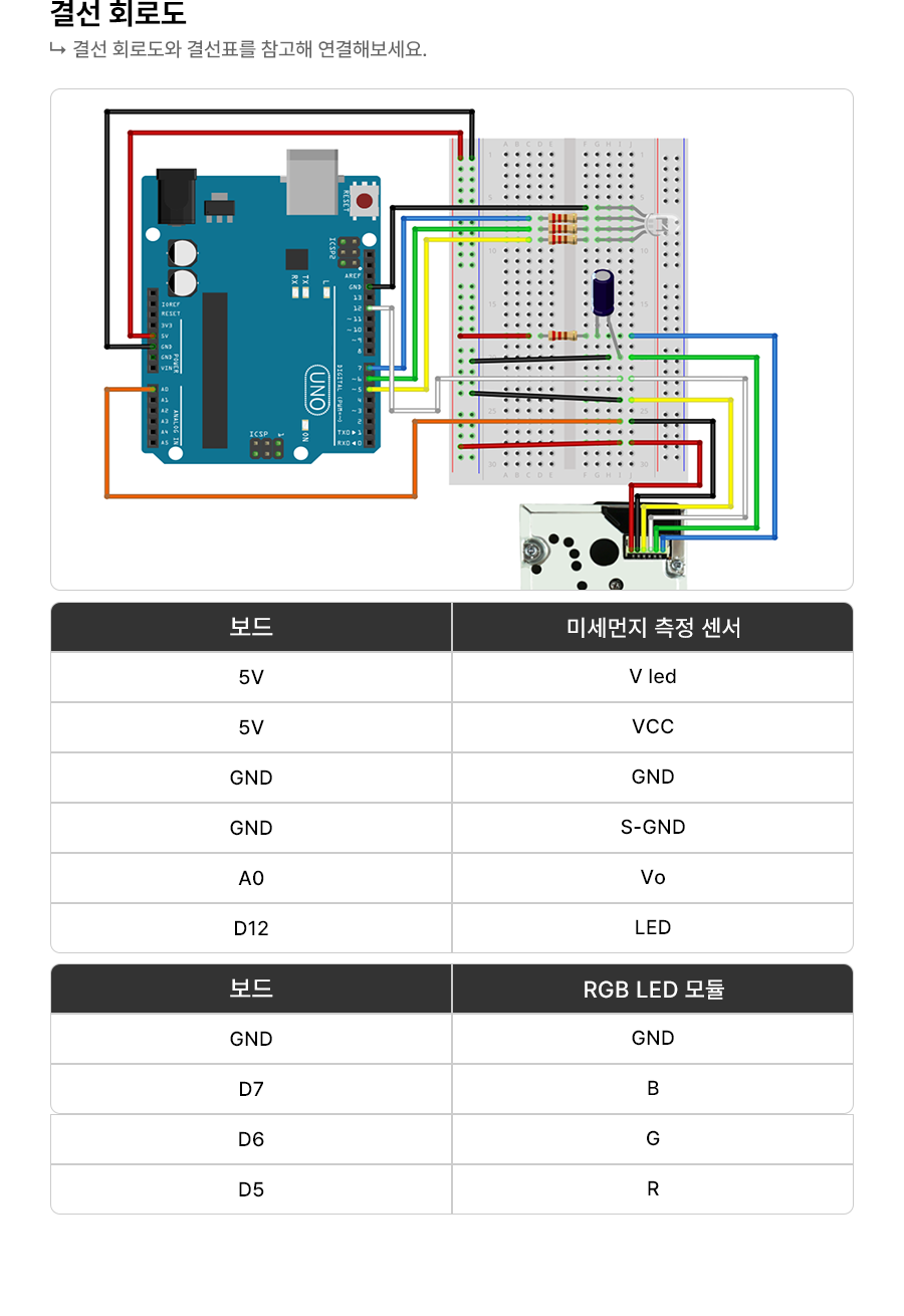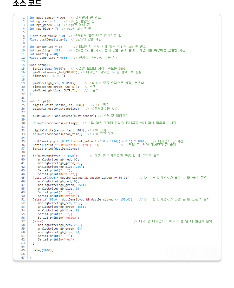 int dust_sensor = A0; // 미세먼지 핀 번호