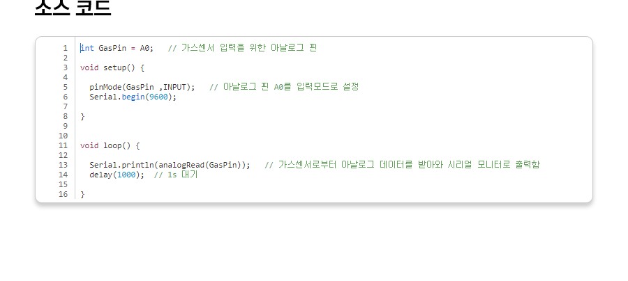 int GasPin = A0; // 가스센서 입력을 위한 아날로그 핀