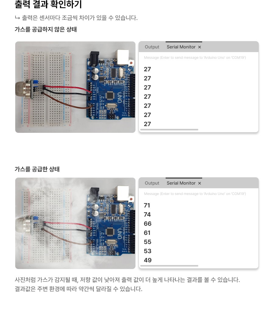 Serial.println(analogRead(GasPin)); // 가스센서로부터 아날로그 데이터를 받아와 시리얼 모니터로 출력함