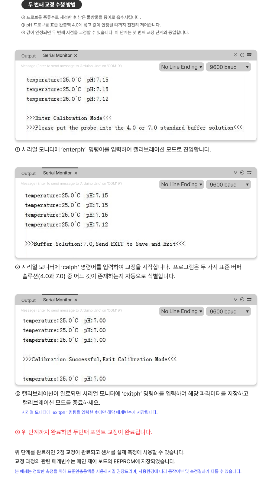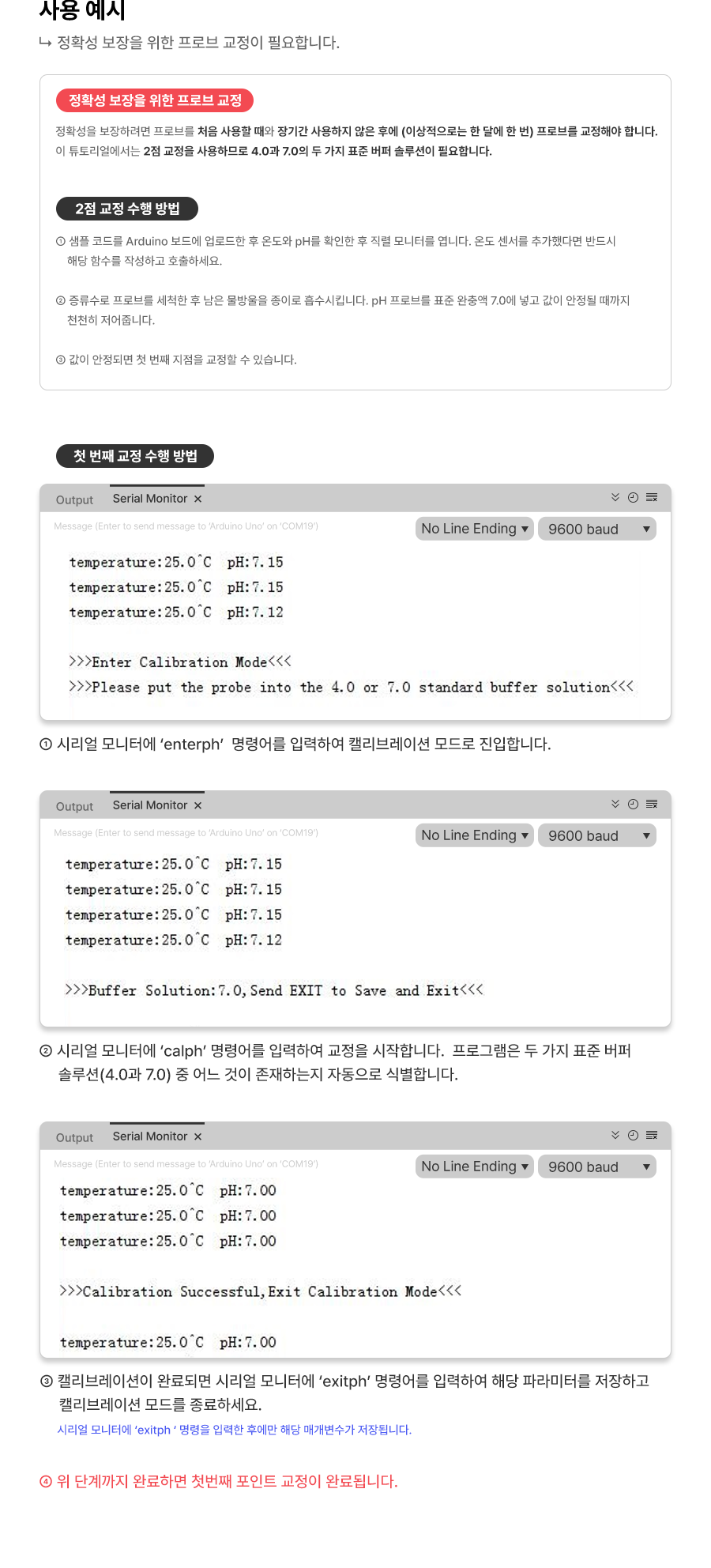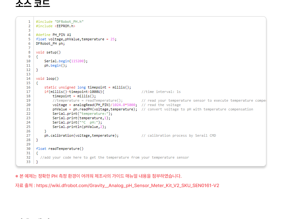 본 예제는 정확한 PH 측정 환경이 어려워 제조사의 가이드 매뉴얼 내용을 첨부하였습니다.